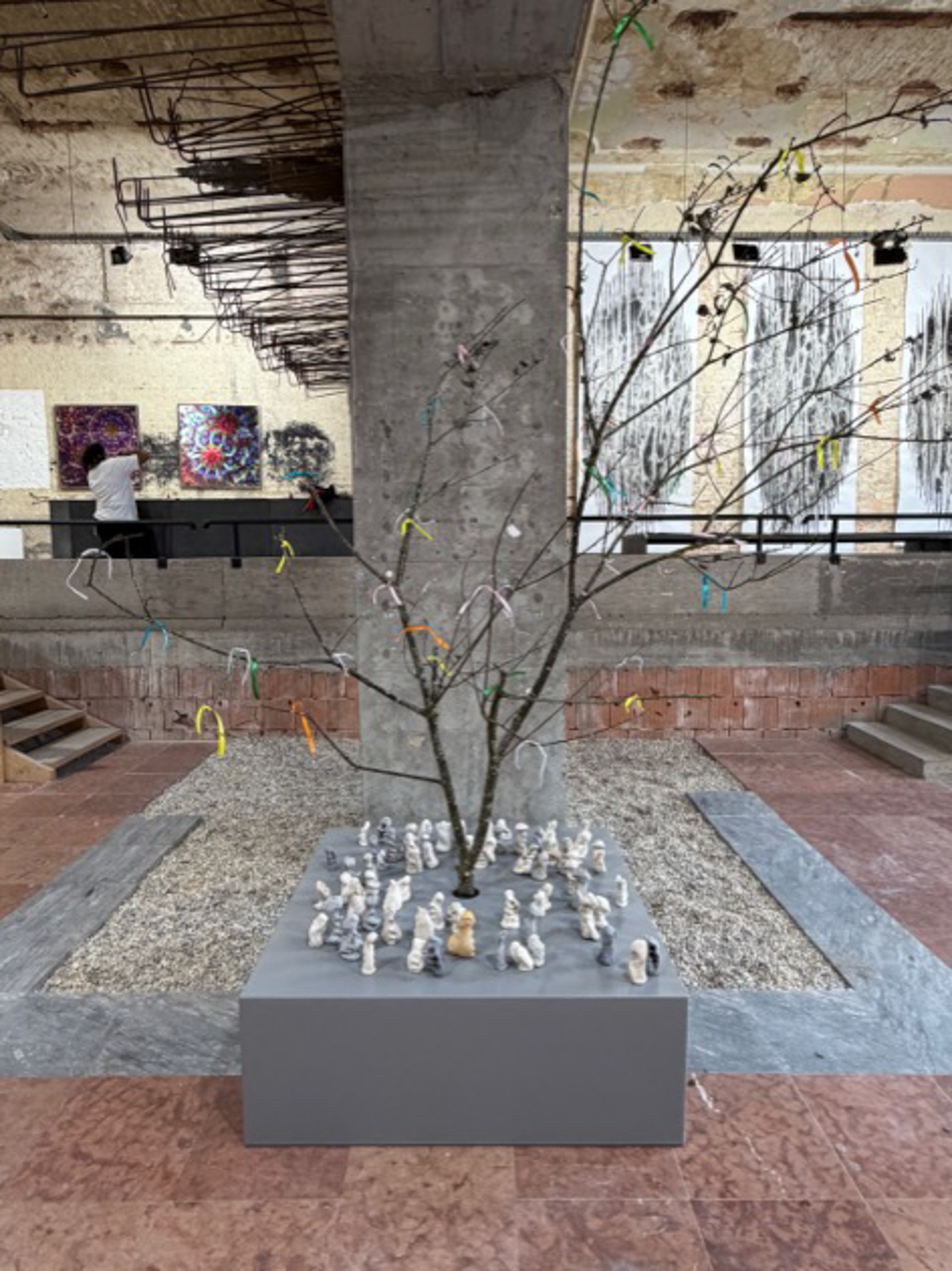 Group installation by students of the MA International Ceramic Design program. The figures emerged from gestural exercises in Kinga Ránthonyi's Ceramic Sculpture course and inverts the gaze of Antony Gormley's "Field" series, rather than figures gazing outward at viewers and obstructing the gallery space, here individual gestures accumulate and inviting you to join a collective meditation on individual wishes and dreams; reflecting on intention and ritual across cultures. The form and title refers back to Csontvary's iconic painting Pilgrimage to the Cedars in Lebanon.